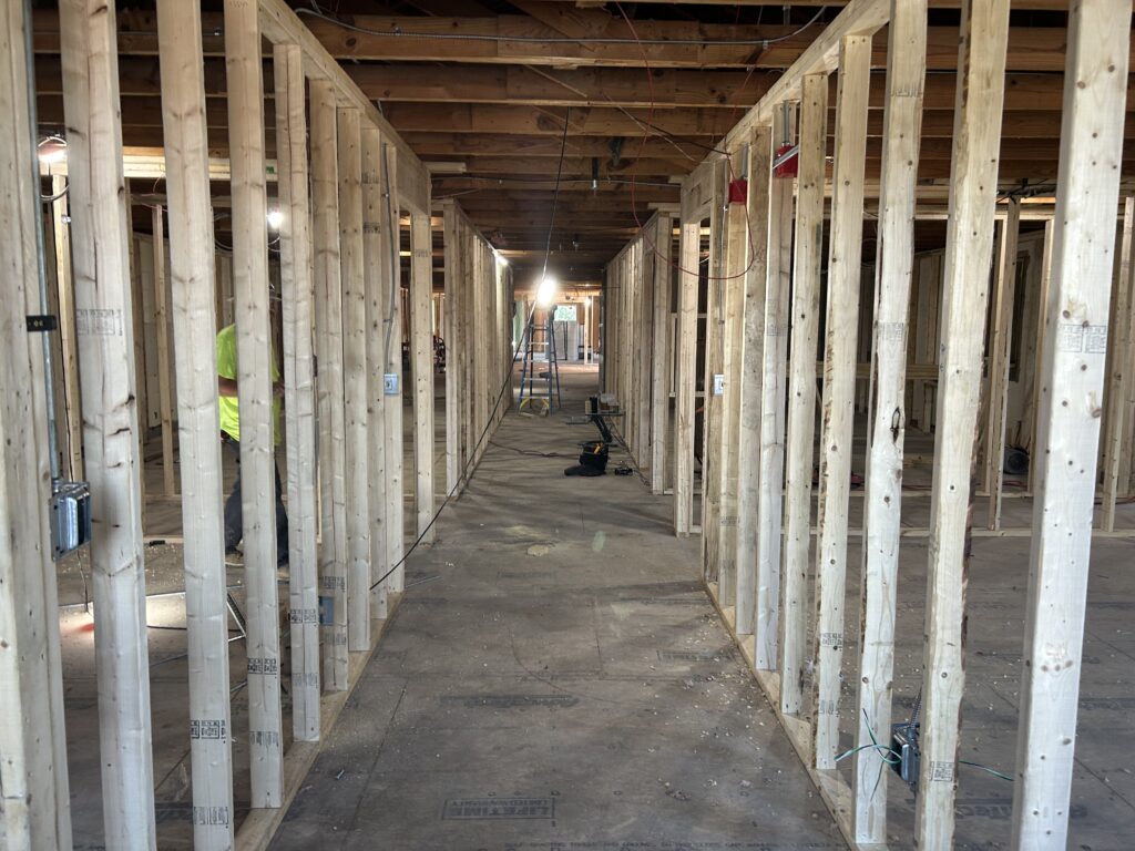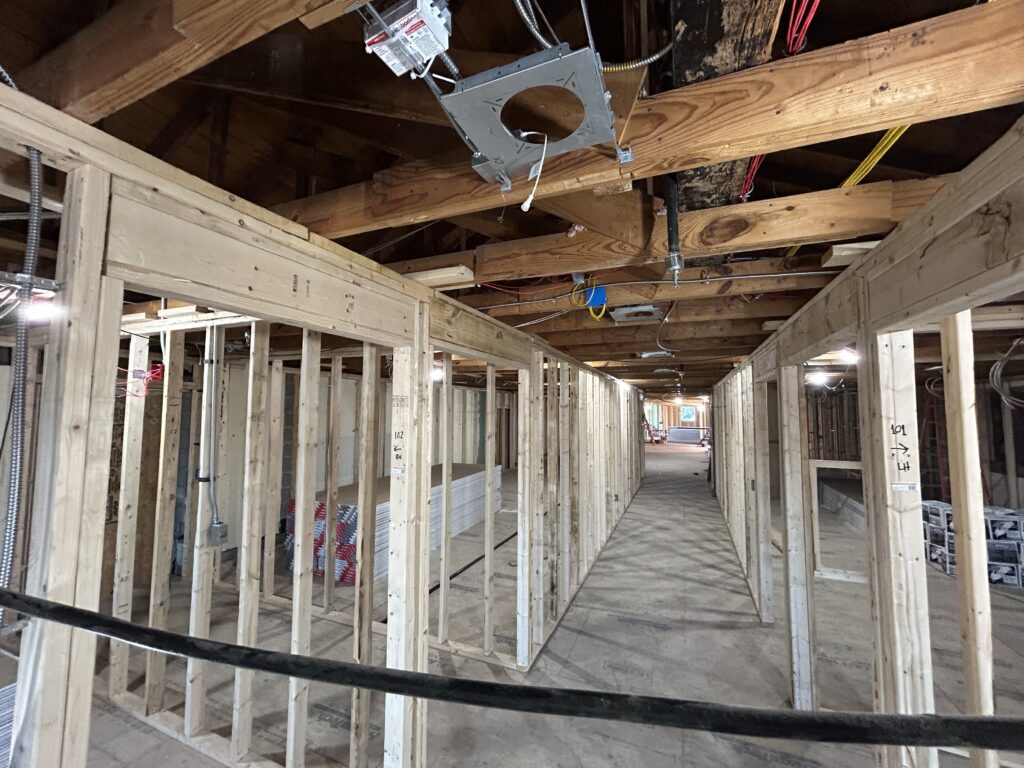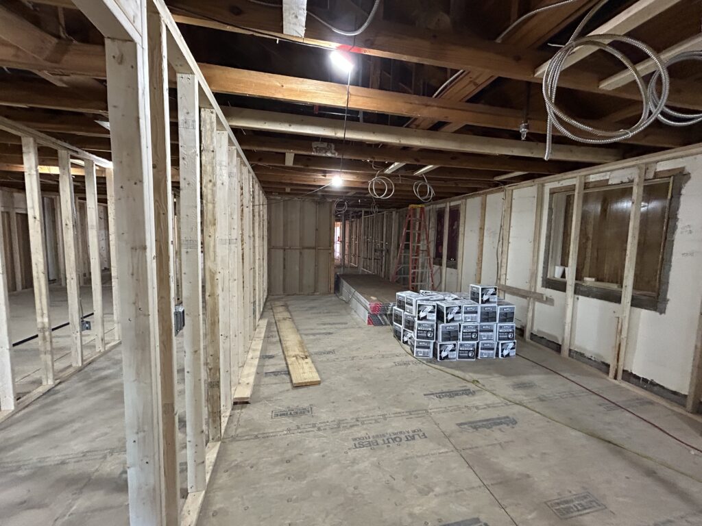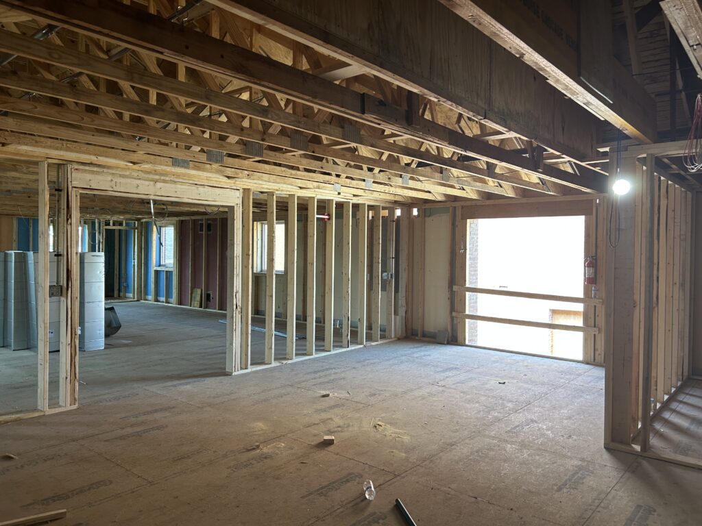 This blog post highlights the beginning stages of the job. You’ll see the open framing, areas where walls have been removed, and spaces ready for transformation with new framing and design layouts.